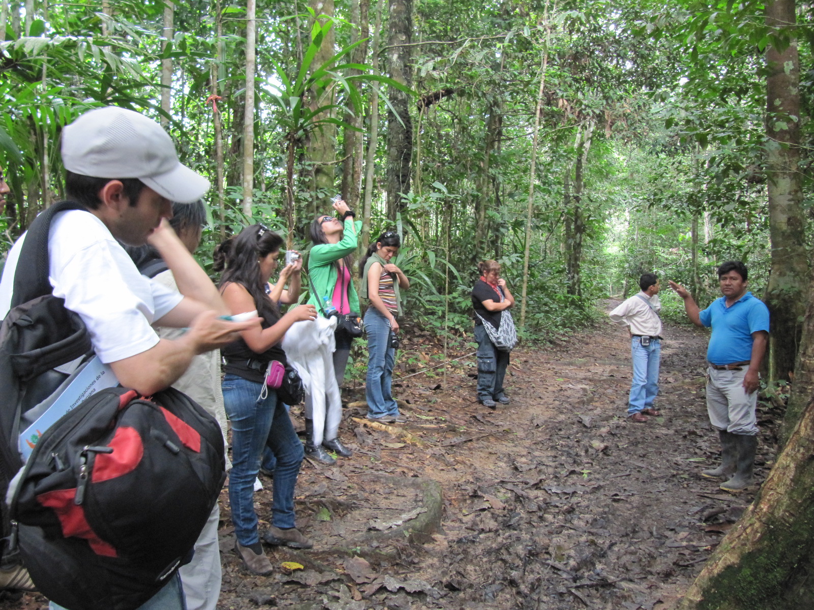 Viaje de estudio de los alumnos de la maestría en Desarrollo Ambiental a la selva peruana. La doctora Ana Sabogal Dunin Borkowski, especialista en Ecología Vegetal y directora de la maestría, es quien dirige el trabajo de campo de los alumnos.
