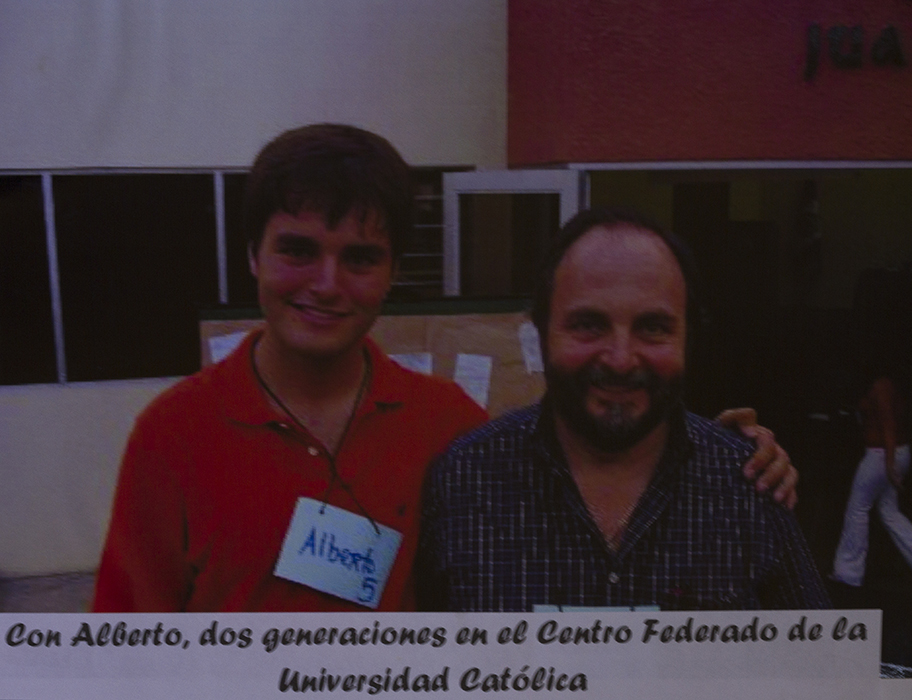 Retrato de padre e hijo durante la Convención de representantes estudiantiles organizada por el Centro Federado de Letras bajo la presidencia de Alberto De Belaunde de Cárdenas. Vemos en la foto al doctor Javier De Belaunde López de Romaña, expresidente del Centro Federado y la FEPUC en los sesentas y padre de Alberto De Belaunde.