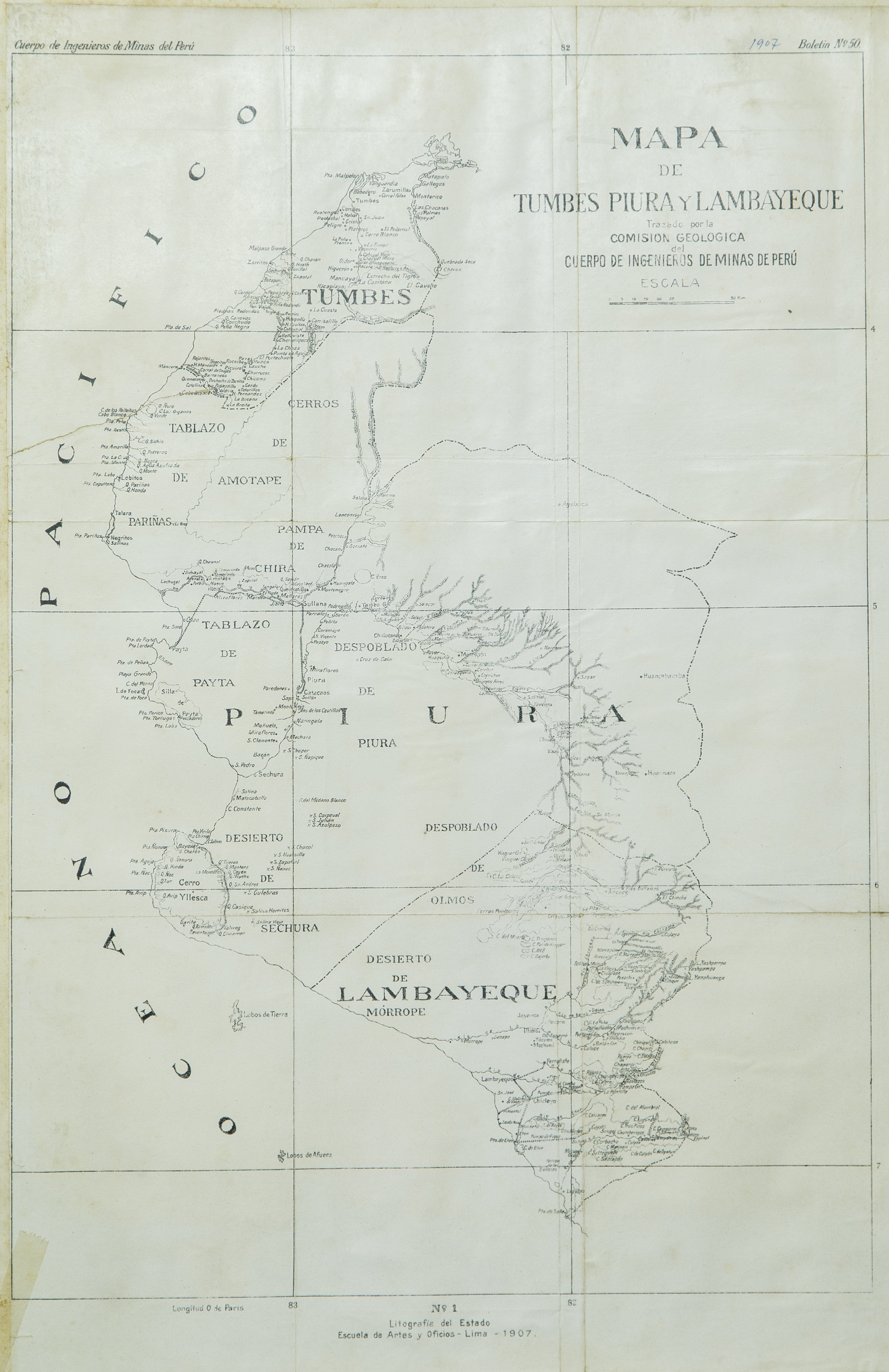 El mapa fue originalmente publicado en el número 50 del Boletín del Cuerpo de Ingenieros de Minas del Perú, correspondiente al año 1907.