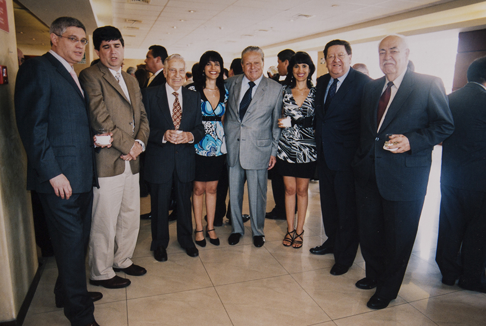 Celebración en la facultad de Derecho. De izq. a der. Vemos en la foto a los profesores del Departamento de Derecho Gastón Fernández Cruz, Alfredo Bullard González, César Delgado Barreto, María del Carmen Delgado Menéndez, Felipe Osterling Parodi, María Antonieta Delgado Menéndez y Mario Pasco Cosmópolis.