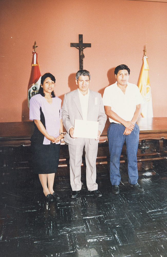 | dc.description.abstract | El señor Mauro Calderón Galindo celebra sus 25 años como trabajador en la PUCP en una ceremonia en Rectorado. Él se desempeñó durante ese tiempo como conserje de la Facultad de Derecho. De izquierda a Derecha vemos en la foto a la señora Paula Calderón Cayllahua, secretaria del Departamento de Derecho e hija del señor Calderón, al señor Mauro Calderón Galindo y a su hijo Raúl Calderón Cayllahua, también trabajador en la PUCP. | es_ES |