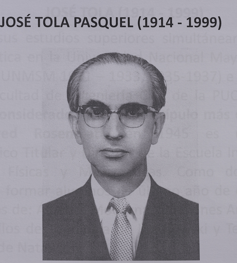 Retrato del Dr. José Tola Pasquel; matemático, ingeniero civil, y primer rector laico de la PUCP. Fue profesor de César Carranza Saravia.