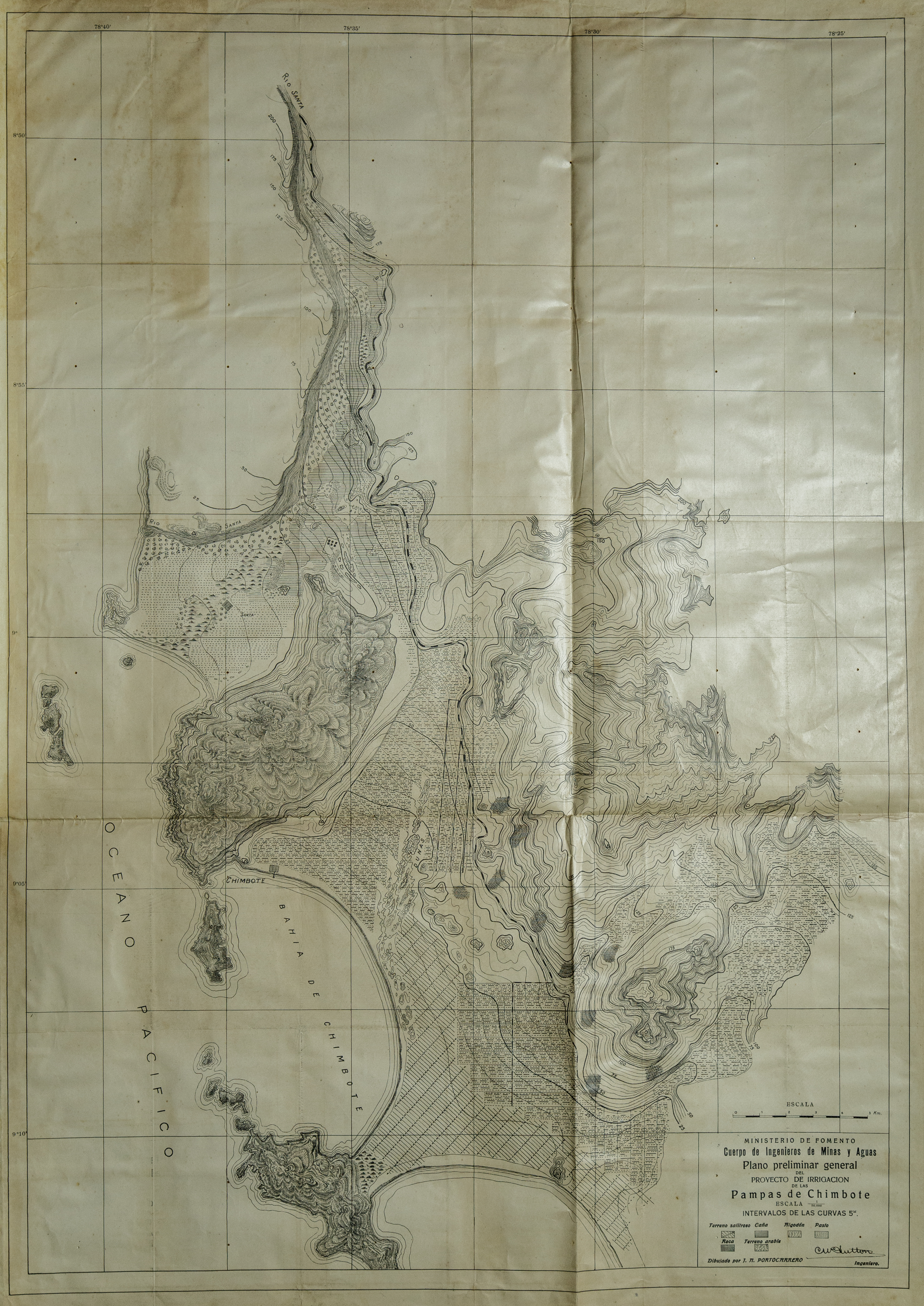 | dc.description.abstract | Plano elaborado por el ingeniero Chales W. Sutton y dibujado por J. N. Portocarrero que muestra el diseño preliminar general del proyecto de irrigación de las pampas de Chimbote. En el plano están reconocidas algunas áreas de cultivo como caña de azúcar y algodón, por ejemplo. El mapa no tiene fecha de publicación exacta; no obstante se coloca el año 1900 por tener seguridad que corresponde al siglo XX. | es_ES |