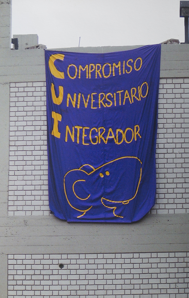 Banderola del movimiento estudiantil Compromiso Integrador Universitario CUI durante las elecciones por el Centro Federado