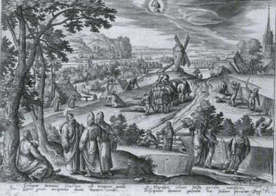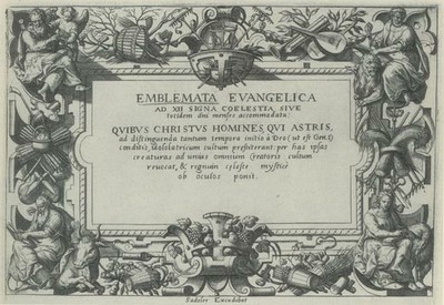 In 1585, one of the members of the Sadeler family of printers and engravers published a set of twelve engravings by Adriaen Collaert after designs by Hans Bol. These engravings were introduced by a title page which described them as "gospel emblems of the twelve celestial signs, set according to the months of the year." The title page went on to explain that "Christ gave man the celestial bodies so that he could discern through them the evolution of time begun in God (acc. to Gen. I), revoke idolatry, and arrive, through these creations, at the worship of a single Creator, setting his sights on the mystical kingdom of the heavens."